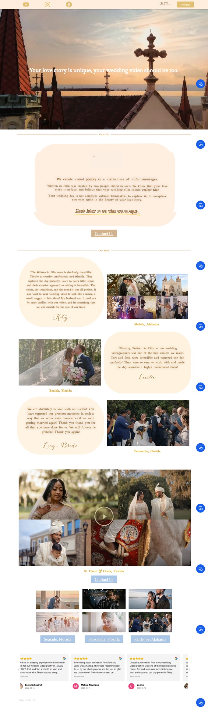 We create visual poetry in a virtual sea of video montages. Written in Film was created by two people elated in love. We know that your love story is unique, and believe that your wedding film should reflect that. Your wedding day is not complete without filmmakers to capture it, to enrapture you once again in the beauty of your love story.